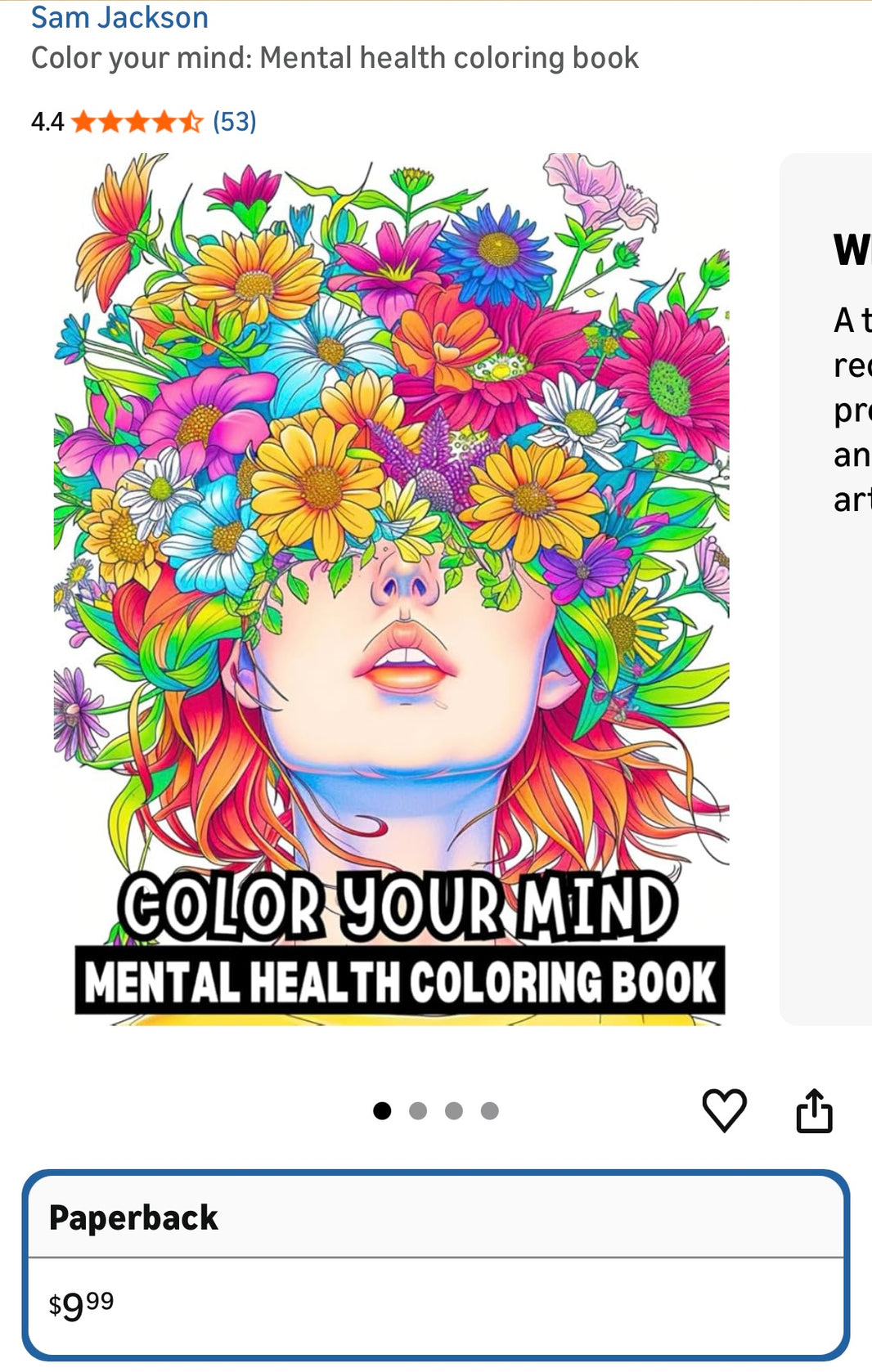 We also sell a coloring book on Amazon. The name is Color your mind: Mental health coloring book ; by Sam Jackson (us).
