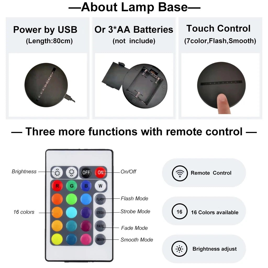 🎁🎁DURABLE AND SAFE FOR KIDS: 💝💝Easy to charge. Safe to touch. Sturdily constructure with toy-grade ABS base and high quality 3D light lamp doesn't get overheat. Two ways for power supply - 3 x AA Batteries (Not include) or USB cable.